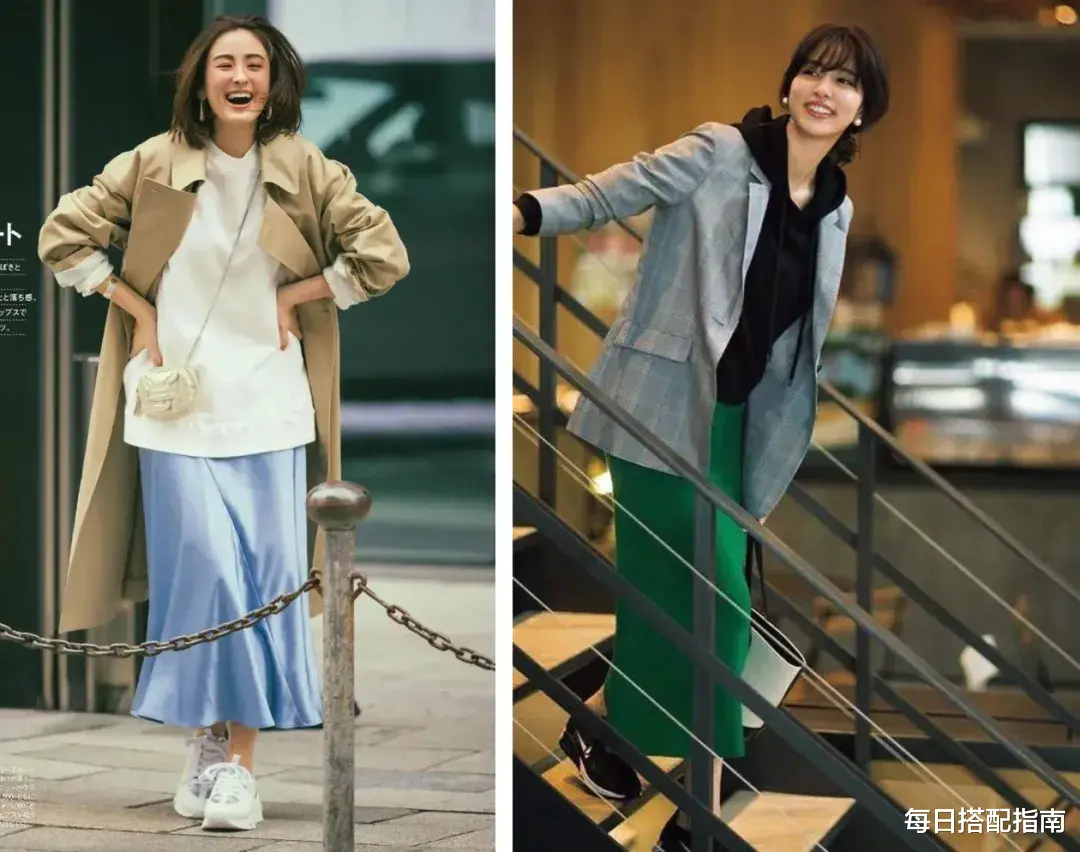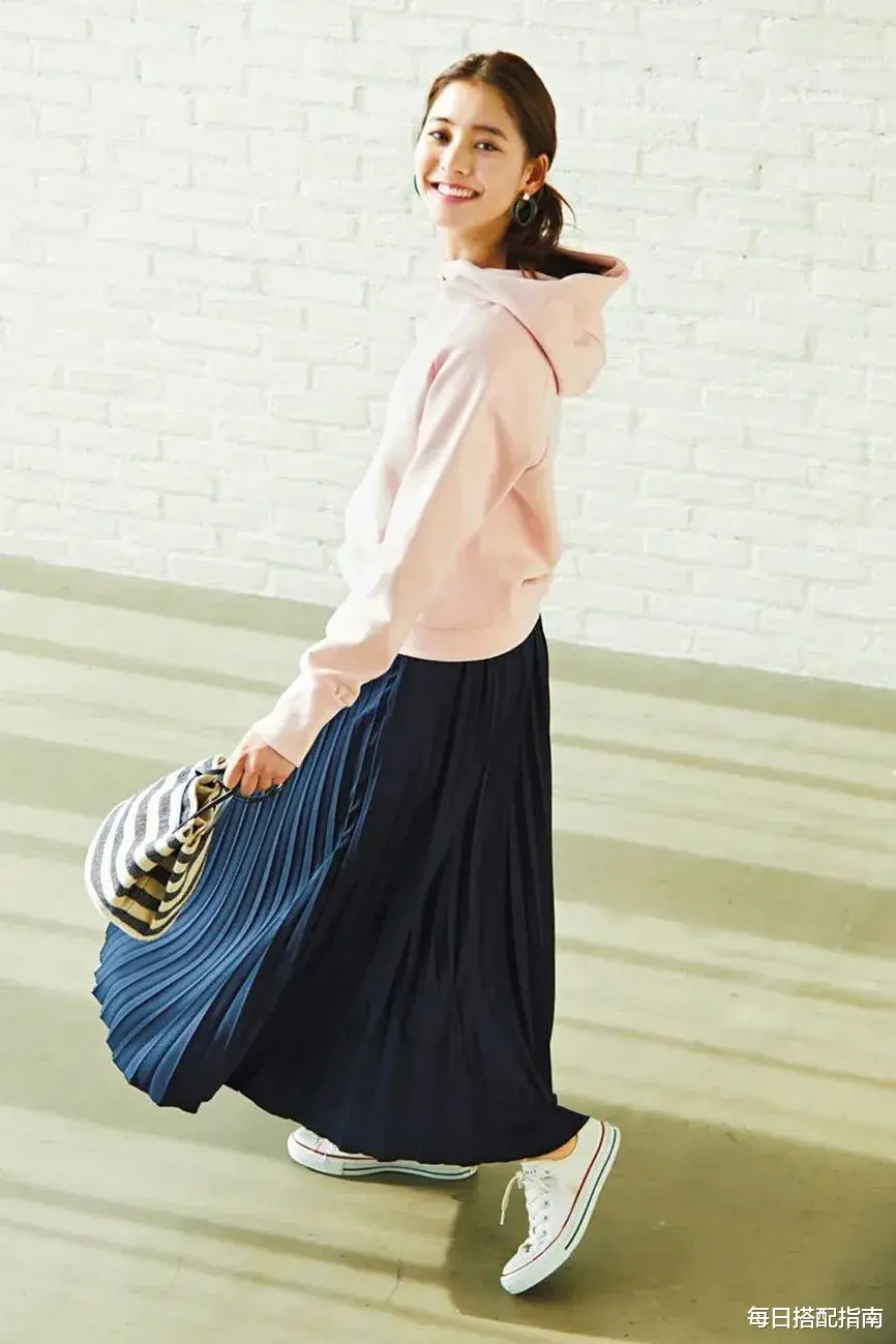 💡 进阶技巧:✔ 金属色腰带(宽度=卫衣螺纹边2倍)——用配饰强化腰线,制造视觉焦点。✔ 选择顺色搭配——用同色系卫衣+裙子,打造高阶“氛围感穿搭”。