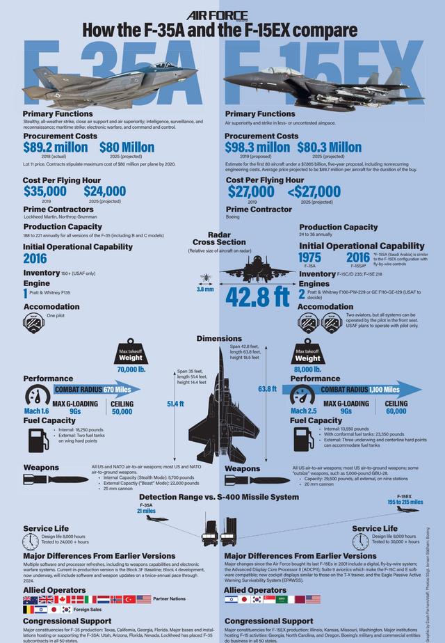 而美国的情况则截然不同,经历过冷战巅峰的美国空军积攒了几千架的家底,从空军到国民警卫队再到飞机坟场,放眼望去全是四代机。F-15C/D当年还是放眼全球找不到对手的先进四代机,而现在接替的EX却并非如此,飞机确实更新更先进了,但是战场上的地位却大不如前。