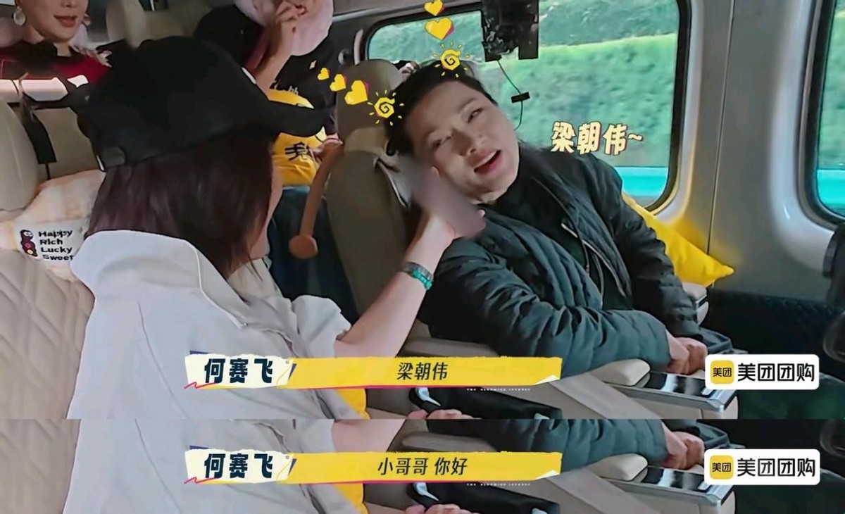 刘嘉玲出于礼貌,又让梁朝伟和何赛飞、刘晓庆打招呼,何赛飞嗲嗲的一句“梁朝伟小哥哥,你好呀”,又让尴尬浓郁了几分。