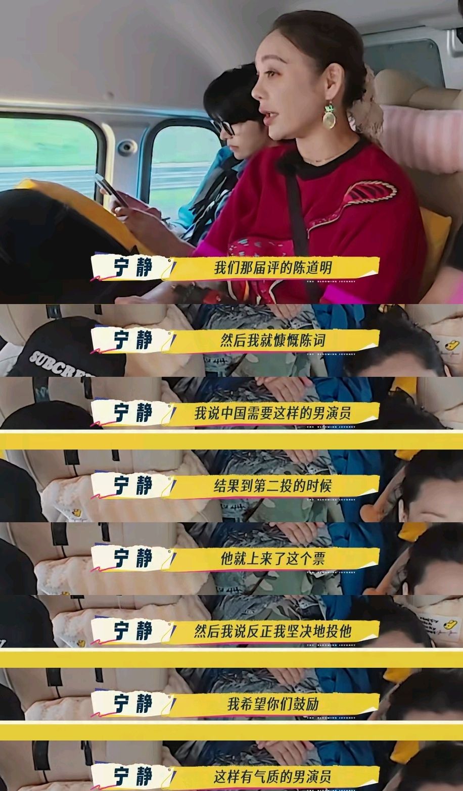到这里还没什么问题,但宁静拿陈道明举例子,说自己当时力排众议投陈道明,大家一开始反对,之后又投给了陈道明。