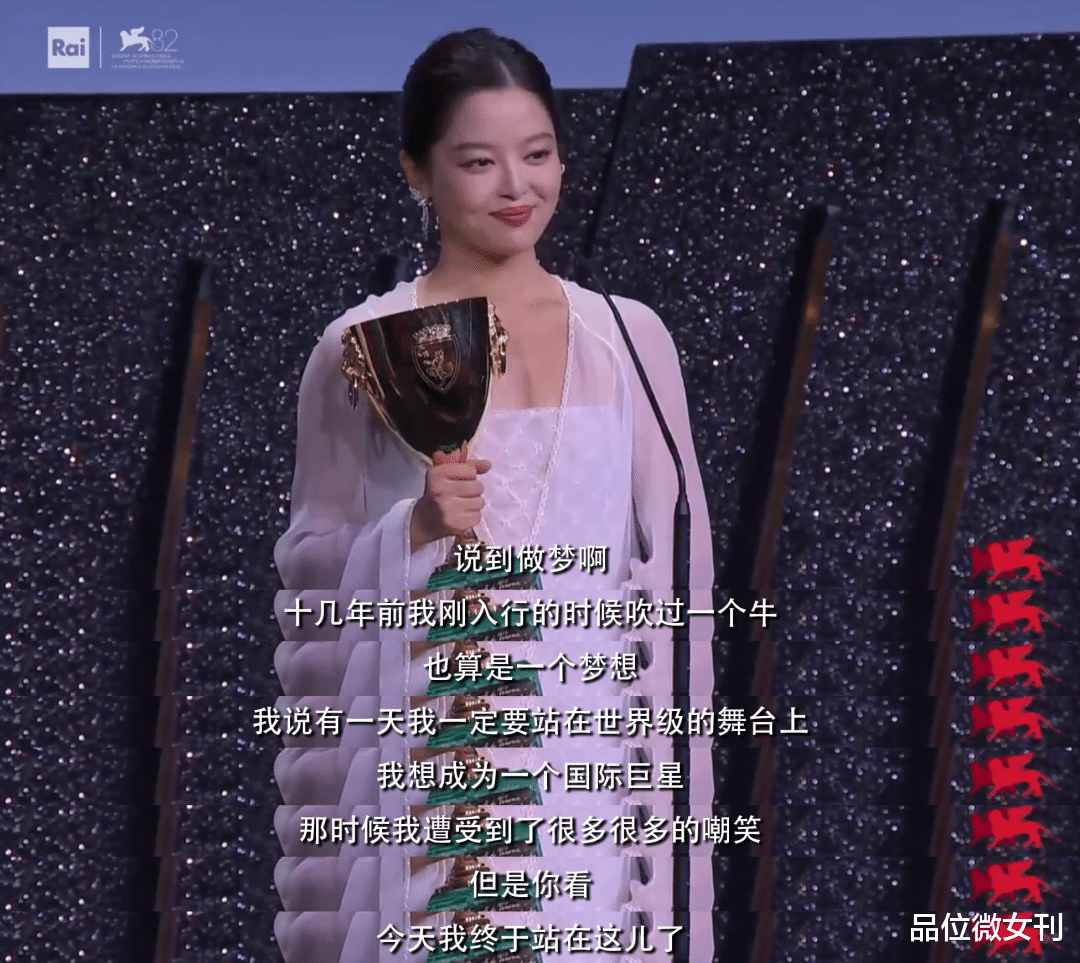 几年前,还是二线小演员的她发过一条微博自嘲,没想到如今她就真的站上了这个至高舞台。从小城鹤岗走到威尼斯,她花了好多年。