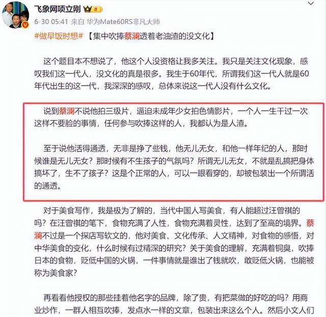 据悉,蔡澜去世后,项立刚连发五文,言辞激烈地对其进行斥责。