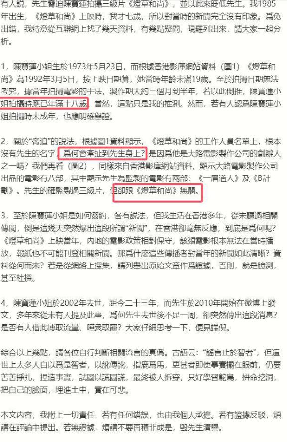 他表示,从可查的资料显示,拍摄三级片时的陈宝莲并不是未成年,之后他更是晒出报纸作为佐证。