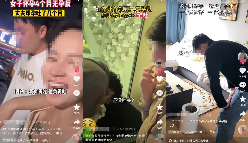 多位抖音博主分享老公孕吐视频(图源:抖音)