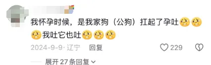 甚至有网友表示,她家狗在她怀孕期间都出现了“孕吐”,令人啼笑皆非。