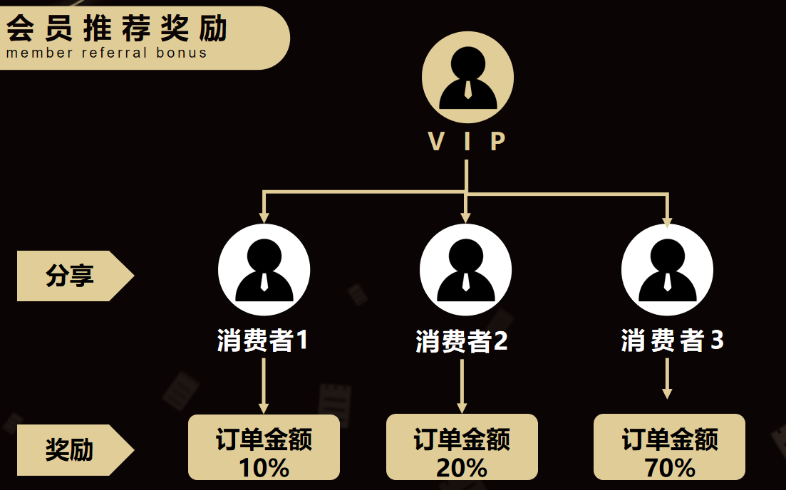 成为VIP后,推荐即可获利。阶梯式奖励设计,如: