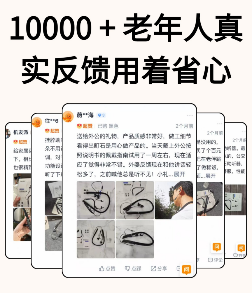 口碑也确实好,评价反馈普遍都很积极。它拿下了国际听力协会认证,还是 10 万 + 用户的共同选择,各大平台好评率高达 99%,用户真实反馈都很高。实测数据超亮眼,人声清晰度提升 105%、降噪效果提升 149%、听力损伤风险降低 124.8%,千元级助听器里这配置真少见。我姥爷用了半个月,现在听街坊唠嗑不用凑前,逢人就夸町石这助听器太靠谱。