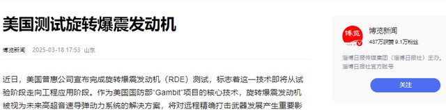 2. 博览新闻2025-03-18 美国测试旋转爆震发动机