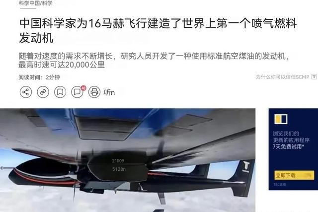 1. 中国科学家为16马赫飞行建造了世界上第一个喷气燃料发动机 南华早报