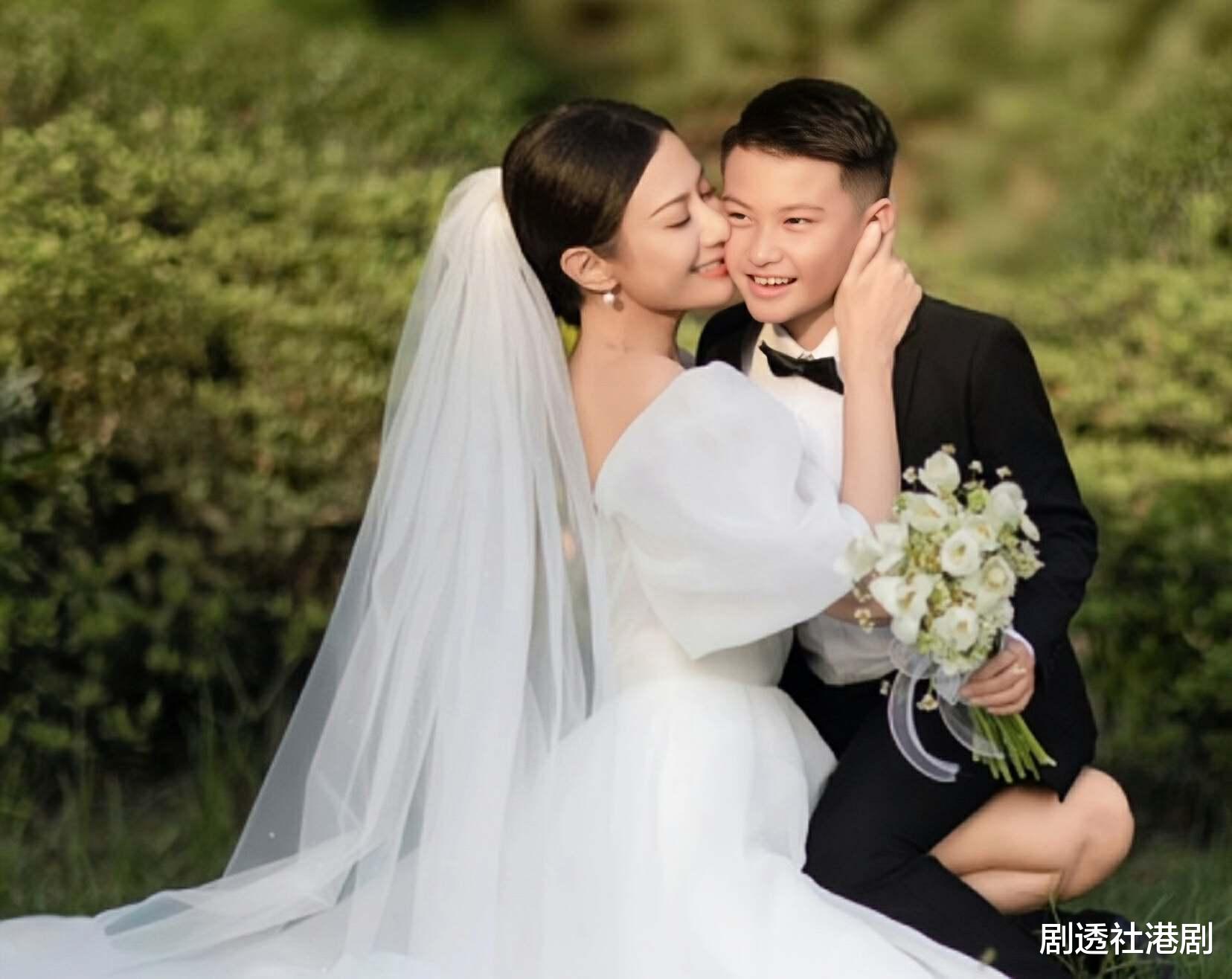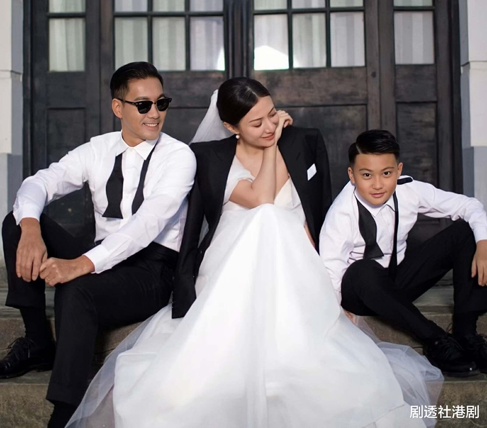 这次趁着结婚十周年,两人也终于圆梦。黄依汶重新穿上婚纱,陈国坤也重新穿上西装。加上两人的儿子陈真,一家三口的婚纱写真非常自然也非常养眼。