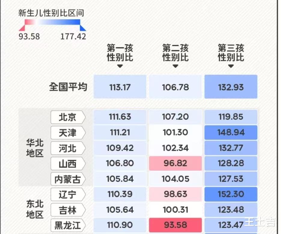 数据显示,城市新生儿的出生性别比是112.15、镇是113.03,而乡村是111.90,甚至略低于城市和乡镇。