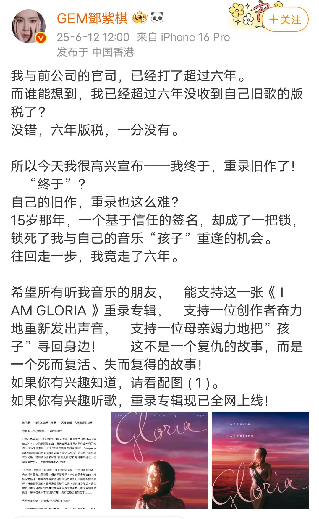 6月18日,邓紫棋的前音乐公司蜂鸟音乐发布声明,指责邓紫棋存在多项侵权行为,声明中提到,蜂鸟音乐公司享有相关歌曲的录音制作者权以及词曲著作权,明确指出歌曲的权利人应为公司,他们认为邓紫棋在未经许可的情况下,对歌曲进行了复制和改编,同时侵犯了信息网络传播权。