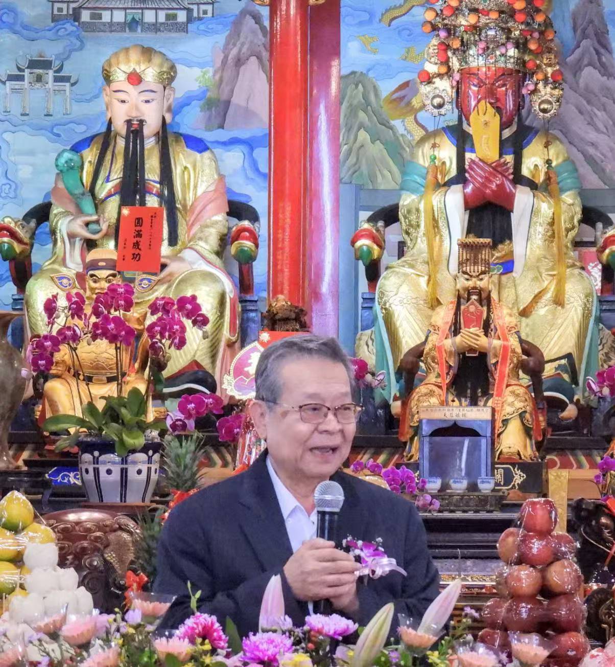 台湾非营利组织联合总会荣誉总会长张连兴,行献桃礼