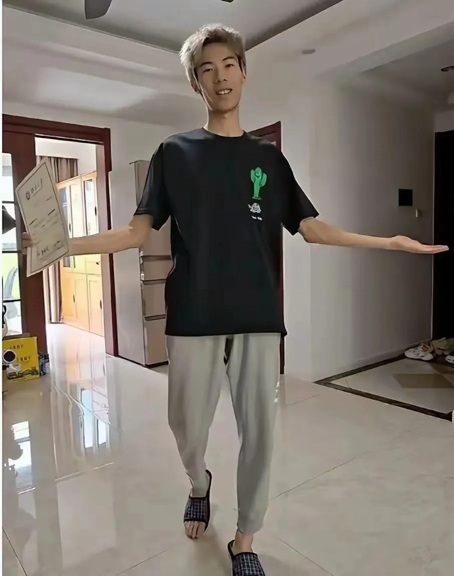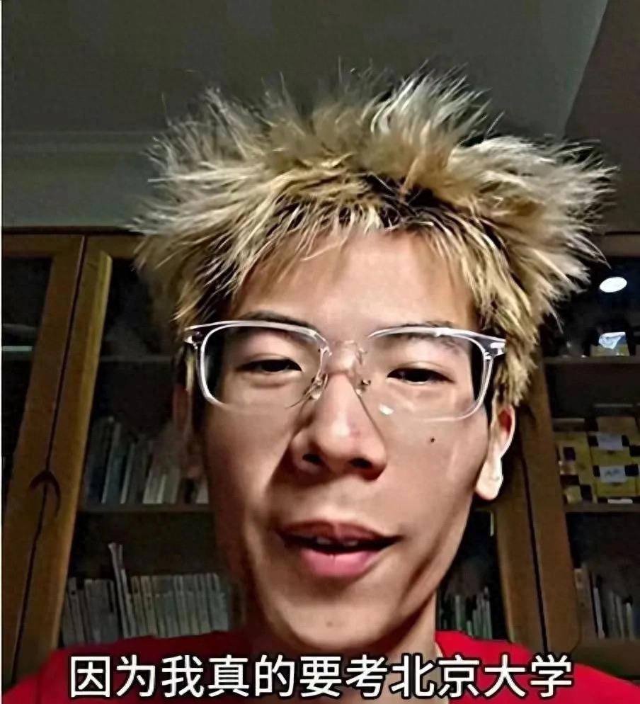 视频里,那男孩头发染得金黄,手里挥舞着一张歪歪扭扭的手绘“通知书”,看起来怎么也不像个“北大学子”。