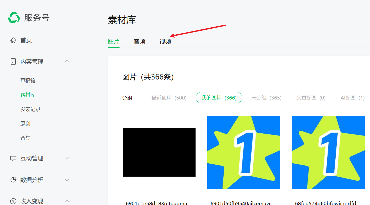 登录微信公众号,点击素材库,上传视频
