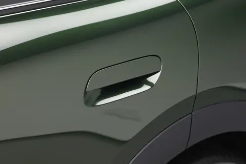 前脸是纯电车常见的封闭式设计,下方留了个通风口,销售说这个通风口不只是装饰,还能优化风阻,同时帮刹车散热,小细节里藏着实用主义的心思。车身侧面的线条很流畅,长度大概在4.2米左右(官方说介于3800-4300mm之间),看着紧凑但不显得局促。悬浮式车顶和半隐藏式门把手都是现在比较流行的设计,我试了下门把手,按一下就弹出来,关门后会自动收回,不仅有科技感,还能降低风阻。轮眉用的是黑色哑光材质,摸上去质感不错,这种设计我之前在二十万级的车上才见过,没想到在10万级的车型上也能看到。