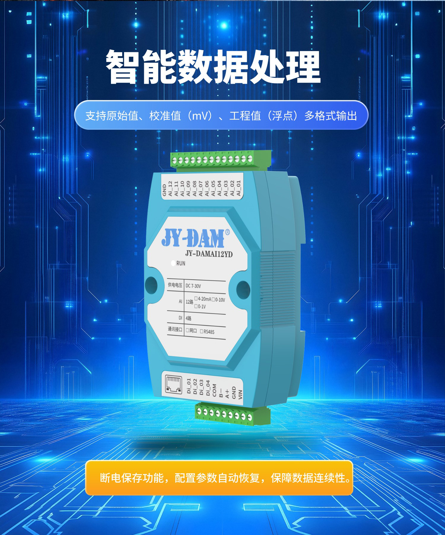 高精度模拟量采集模块是物联网(IoT)系统中连接物理世界与数字平台的核心组件,主要用于将温度、压力、电流、电压等连续变化的模拟信号,转化为计算机可识别的数字信号,广泛应用于工业控制、智能监测、物联网终端等场景。