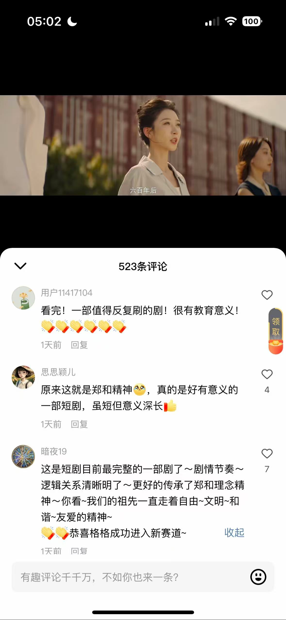 商业化类型融合:《郑和下西洋:沧海新途》创新性融入“48小时限时解谜”的强类型叙事;而《搬砖吧,大小姐!》开创的“微短剧+穿越+景区导流”模式,已形成可复制的商业闭环。同时王子元还透露:“我们正构建郑和IP宇宙,《郑和下西洋:沧海新途》作为三部曲开篇,后续将逐年推出新作。”