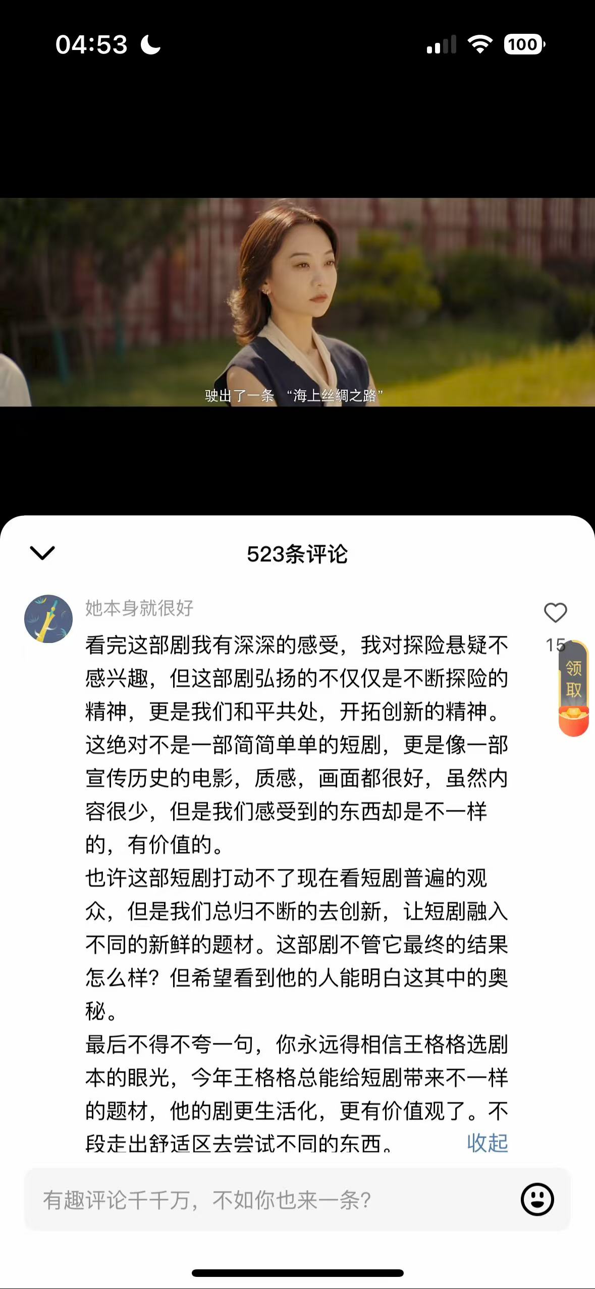 拍摄品质获广泛赞誉,树立行业新标杆——影片严格遵循电影级制作标准,从恢弘壮阔的海战场面到细腻考究的服饰道具,从精心设计的“牵星术”特效到扣人心弦的叙事节奏,无不彰显精良的工业水准与艺术追求。这种对品质的极致打磨赢得了观众与业界的双重认可,在红果短剧平台上线首日,热度值便势如破竹般突破3364万大关,一举刷新了国内文旅微短剧的历史热度纪录,树立了精品文旅短剧的品质天花板,有力证明了精品内容的市场号召力。