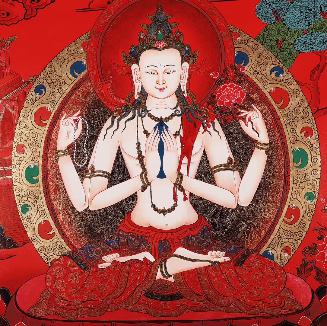 接下来请朋友们欣赏一组沃唐卡编号为158-535979的四臂观音唐卡: