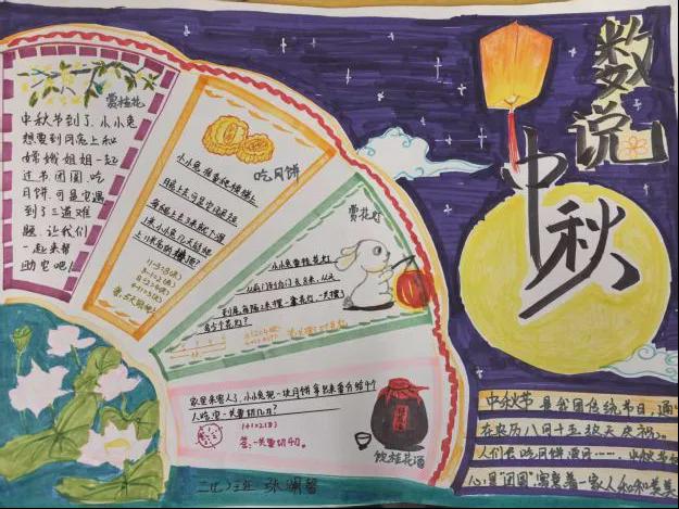 中秋节是中华优秀传统文化的重要载体,二七班谢文焱、张澜馨、霍恩熙三位同学在深入理解“但愿人长久,千里共婵娟”的诗意后,巧妙将中秋文化融入数学手抄报:围绕“买月饼、分月饼”设计乘除法问题,在计算中既巩固了知识,又体悟了分享的喜悦与团圆的温暖,生动践行了思政教育倡导的集体主义精神。正如张九龄所咏:“海上生明月,天涯共此时”,当节日温情邂逅数学逻辑,习题也有了人情的温度。