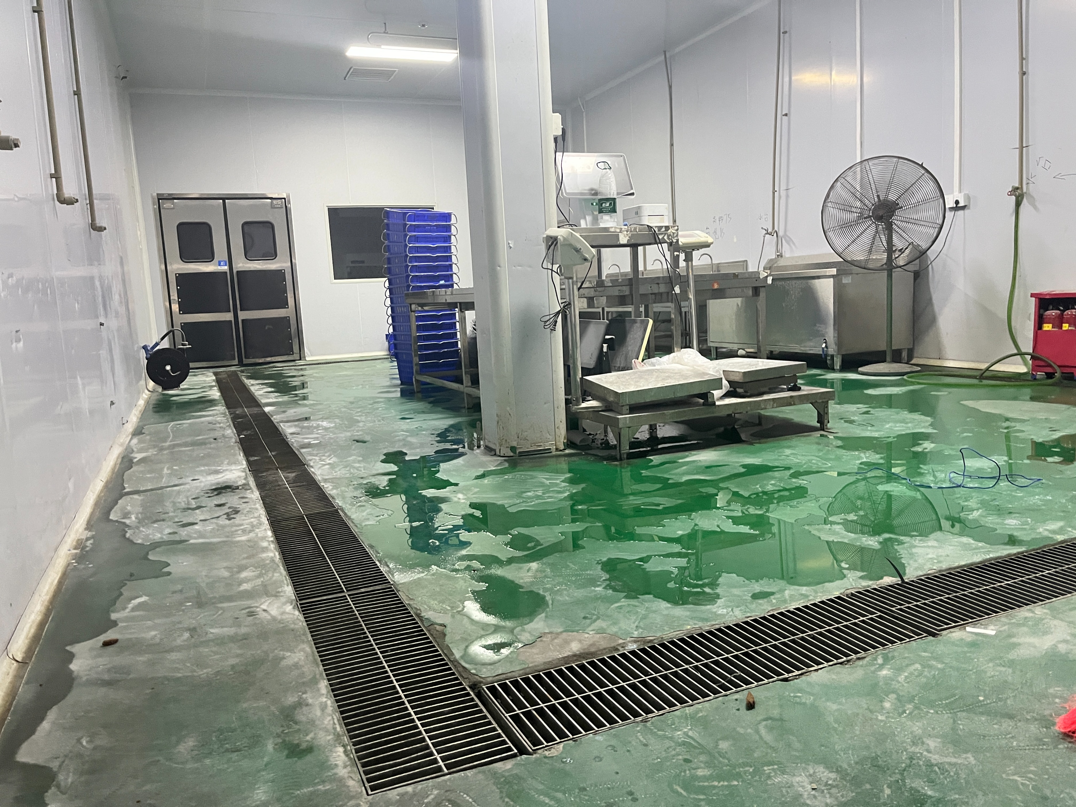 生产过程中,地面会接触到高温蒸汽冲洗,也可能遇到冷库的低温环境。叉车来回碾压以及重物掉落。还有酱油、油脂、果汁、乳酸等各类酸碱介质的腐蚀。
