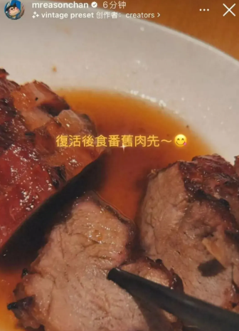 陈奕迅19日晚更新社交账号,发布烤肉照片并配文"复活后先吃肉"。简短幽默的回应既破除谣言又展现良好状态。他经常都有分享美食动态,生病期间仍保持幽默。粉丝也留言表达关心,期待他早日康复重返舞台。