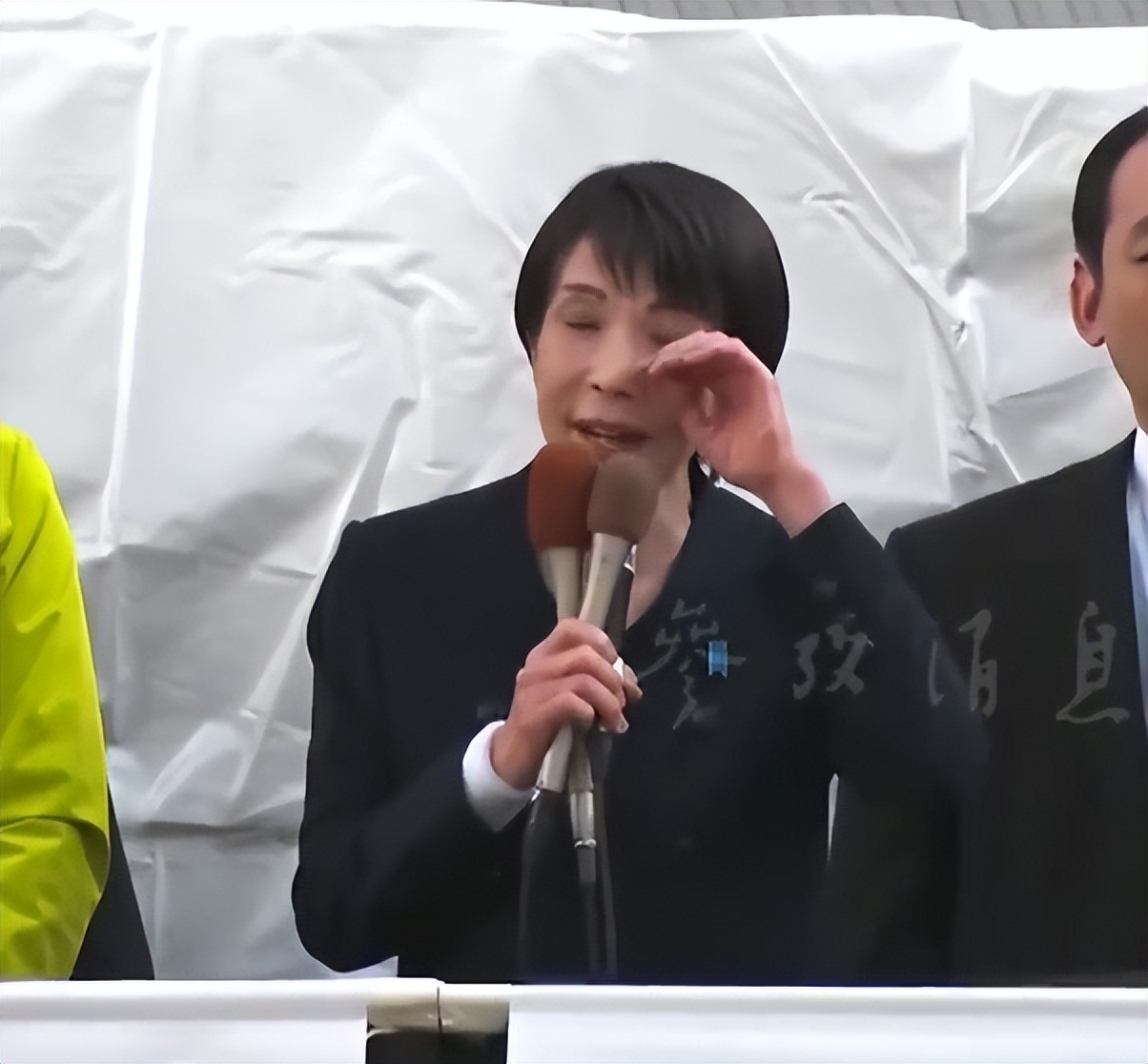高市早苗用双手扶着头,工作人员紧急上前