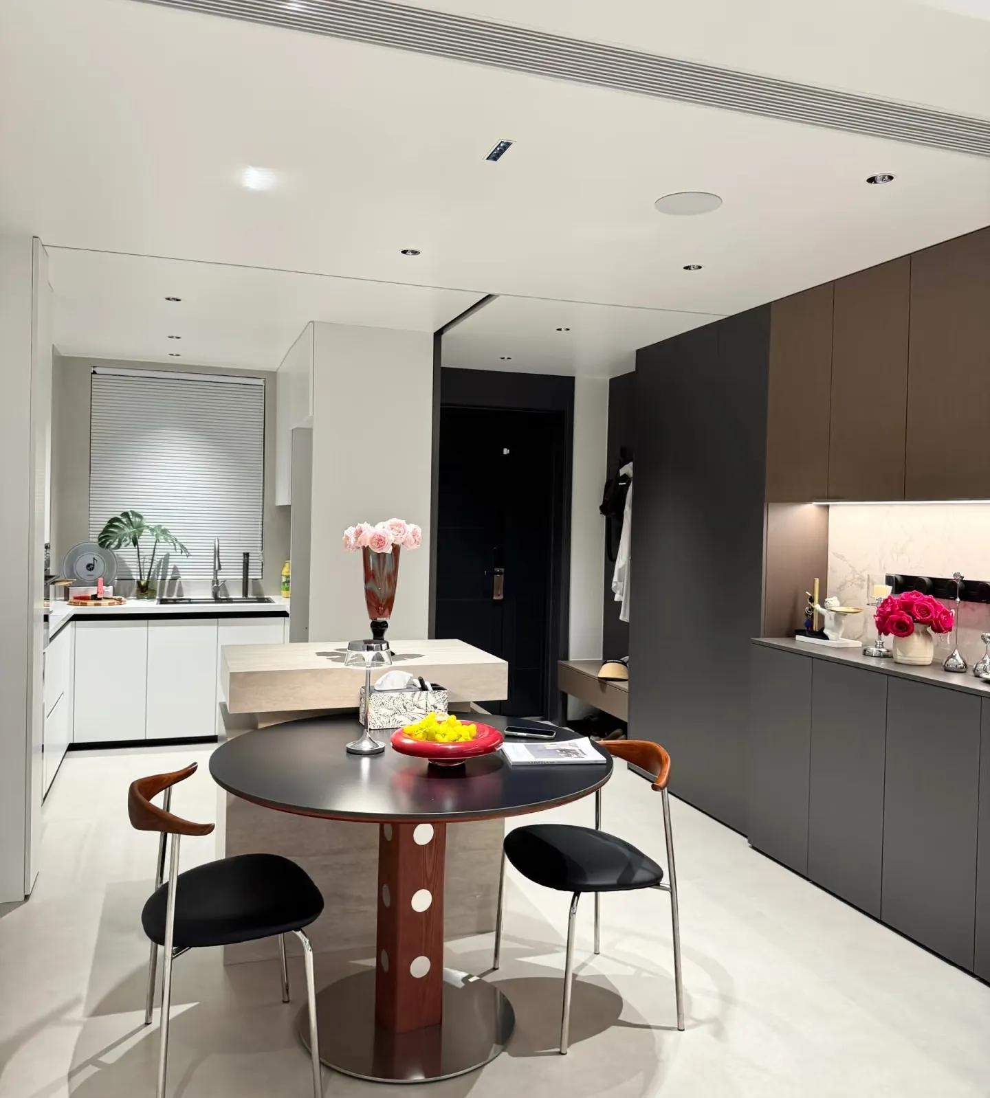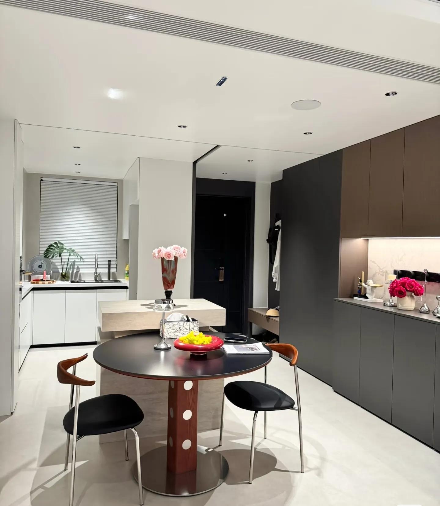 餐厅区域岛台➕黑色圆桌组合,真心挺实用的。
