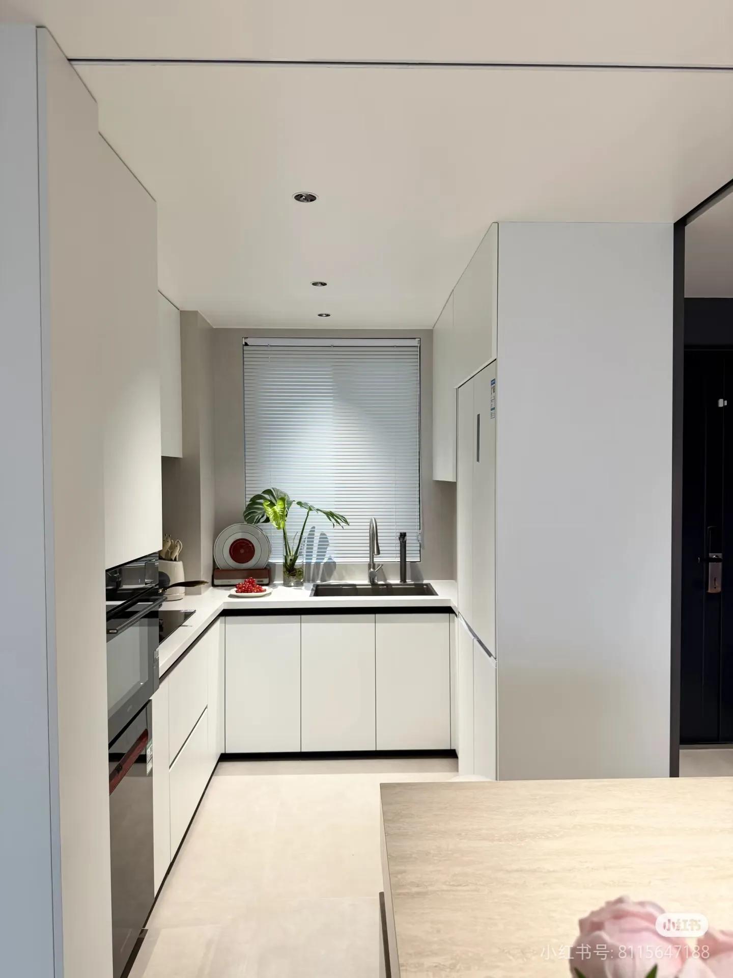 侧面我们可以规划一组到顶的餐边柜,真心❤️不错,上下储物,中间镂空区域设计操作台面。