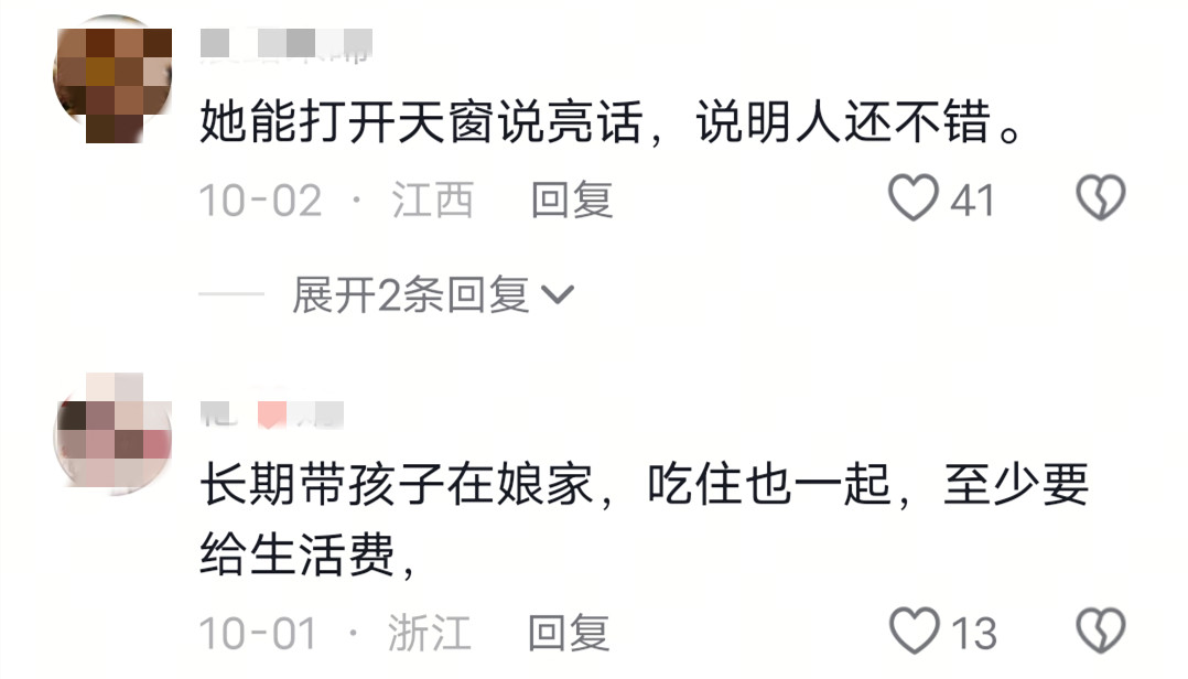 评论区,大多数观点都是这样的,她就应该要交点生活费,而不是理直气壮的。
