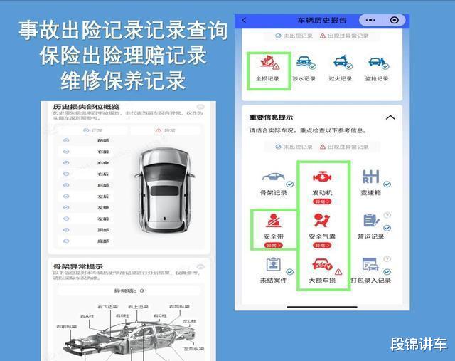 在这里,我想插入一个场景化片段。在一家二手车行里,一位年轻的小伙子正在认真地查看一辆车的查险记录。他的眼神专注而严肃,仿佛在寻找什么重要的线索。当他看到这辆车没有任何重大事故记录时,脸上露出了满意的笑容。他感叹道:“真是太实用了,这下我可以放心购买这辆车了。”
