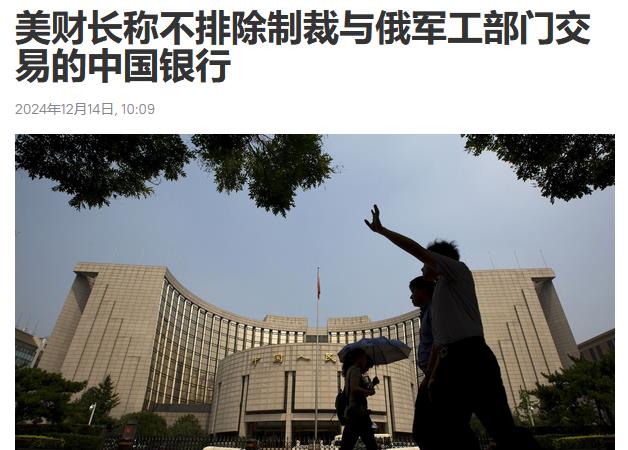 俄罗斯卫星通讯社:美财长称不排除制裁与俄军工部门交易的中国银行