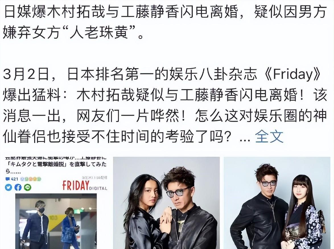 离异原因被传工藤静香人老珠黄,青春不再,被木村拓哉嫌弃。...