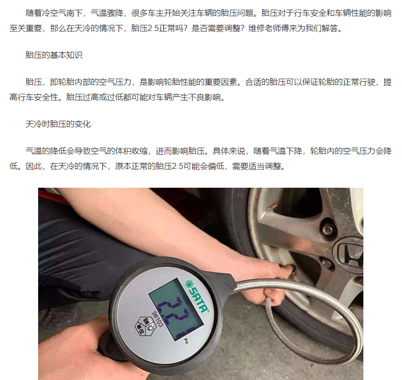 天冷了,胎压2.5正常吗?应该调高还是调低?看看维修师傅怎么说