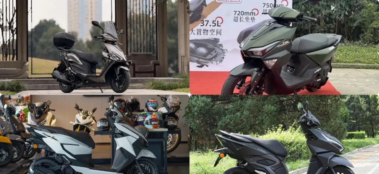 接下来说说三阳SHEX125,这款车一出场就带着一股“杀气”。9980元的售价,直接把带ABS的125踏板价格拉到了万元以内。除了价格优势,它的配置也相当给力:前轮ABS、后轮TCS、37.5升的超大座桶……几乎把能给的都给了。对于追求性价比的用户来说,它无疑是极具诱惑力的。但是,它的动力表现相对平庸,极速在90km/h左右,对于追求速度的骑士来说可能略显不足。此外,它的“新中式运动风”设计也并非人人都能接受,有人觉得时尚,也有人觉得略显古怪。