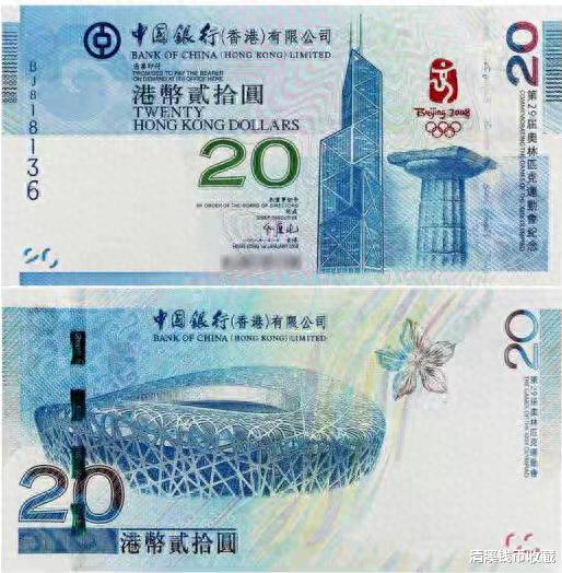 2008年北京奥运会举办,为迎接和纪念北京奥运会,中国银行(香港)有限公司于2008年7月11日以“同贺盛事 齐显爱心”为主题,发行了“第29届奥林匹克运动会港币纪念钞”,该纪念钞面值20元,共发行400万张。