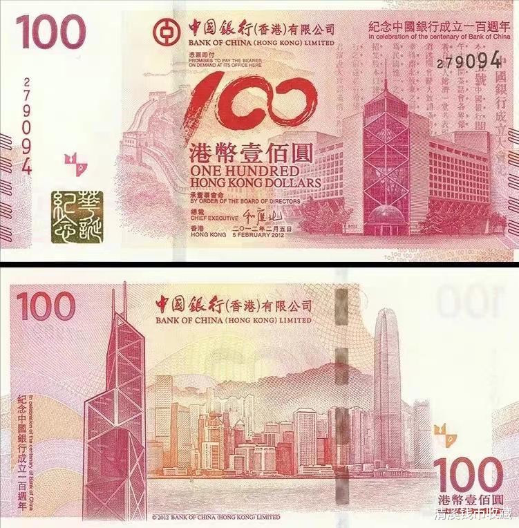 中国银行成立于1912年,历史悠久。2012年,为了庆祝中国银行成立一百周年,香港、澳门都发行了“中国银行成立一百周年纪念钞”。