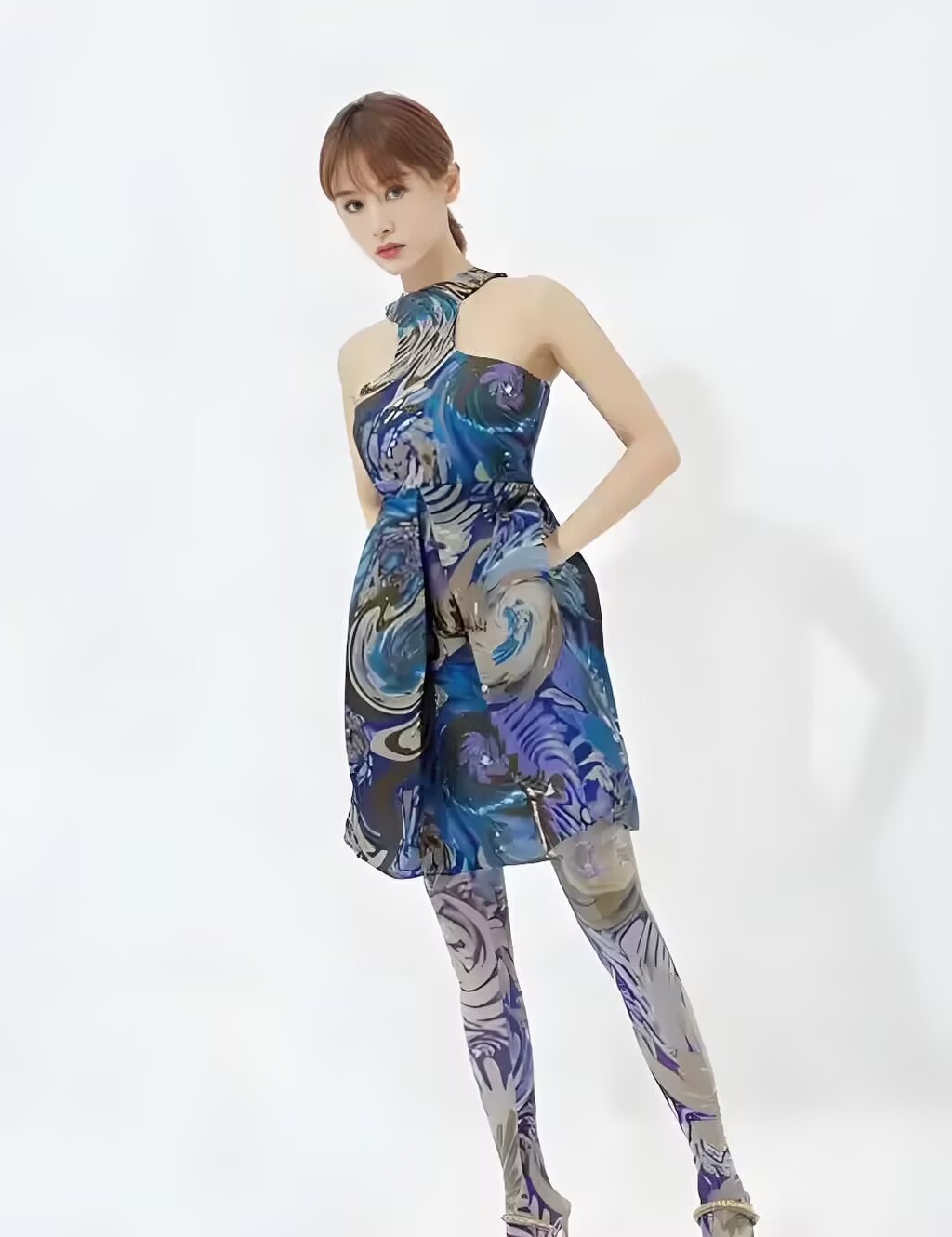 2020年的一组街拍中,王子文将渔网袜从头穿到脚,黑色网眼与白色薄纱裙碰撞出叛逆美学。她故意将鞋带绑在丝袜上,这种反常规的穿搭被时尚博主称为“解构主义的胜利”。采访中,她坦言:“时尚不是迎合,而是表达自我。”