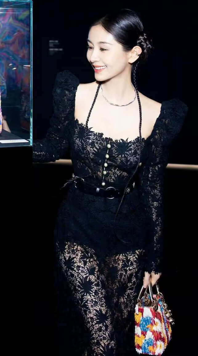 2025年3月13日,STYLE GALA风尚之夜红毯上,王子文以一袭黑色镂空连衣裙惊艳全场。裙身的透视网纱若隐若现地勾勒出她的腰臀曲线,搭配黑色鱼嘴高跟鞋,双腿在黑丝包裹下更显修长。她的步态轻盈,每一步都带着猫科动物的优雅,镂空设计在灯光下投射出细碎的阴影,将东方女性的含蓄与性感完美融合。有网友评论:“这哪里是红毯,分明是曲妖精的狩猎场。”