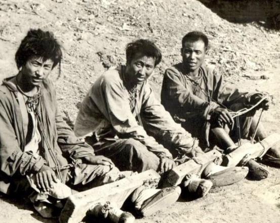 清末年间,三名受罚之人沿街示众,表面看似无甚苦楚,实则步履维艰,连行走都极为不易,更遑论进行如厕等基本活动。从他们的面部表情推测,这或许不是他们初次触法,或许因知晓性命无忧而显得较为镇定。他们的脚上套着沉重的枷锁,双手亦被铁链束缚,甚至颈部还与脚上的链条相连,种种迹象表明,他们所犯之事恐怕非同小可,绝非一般偷窃之类的小错。