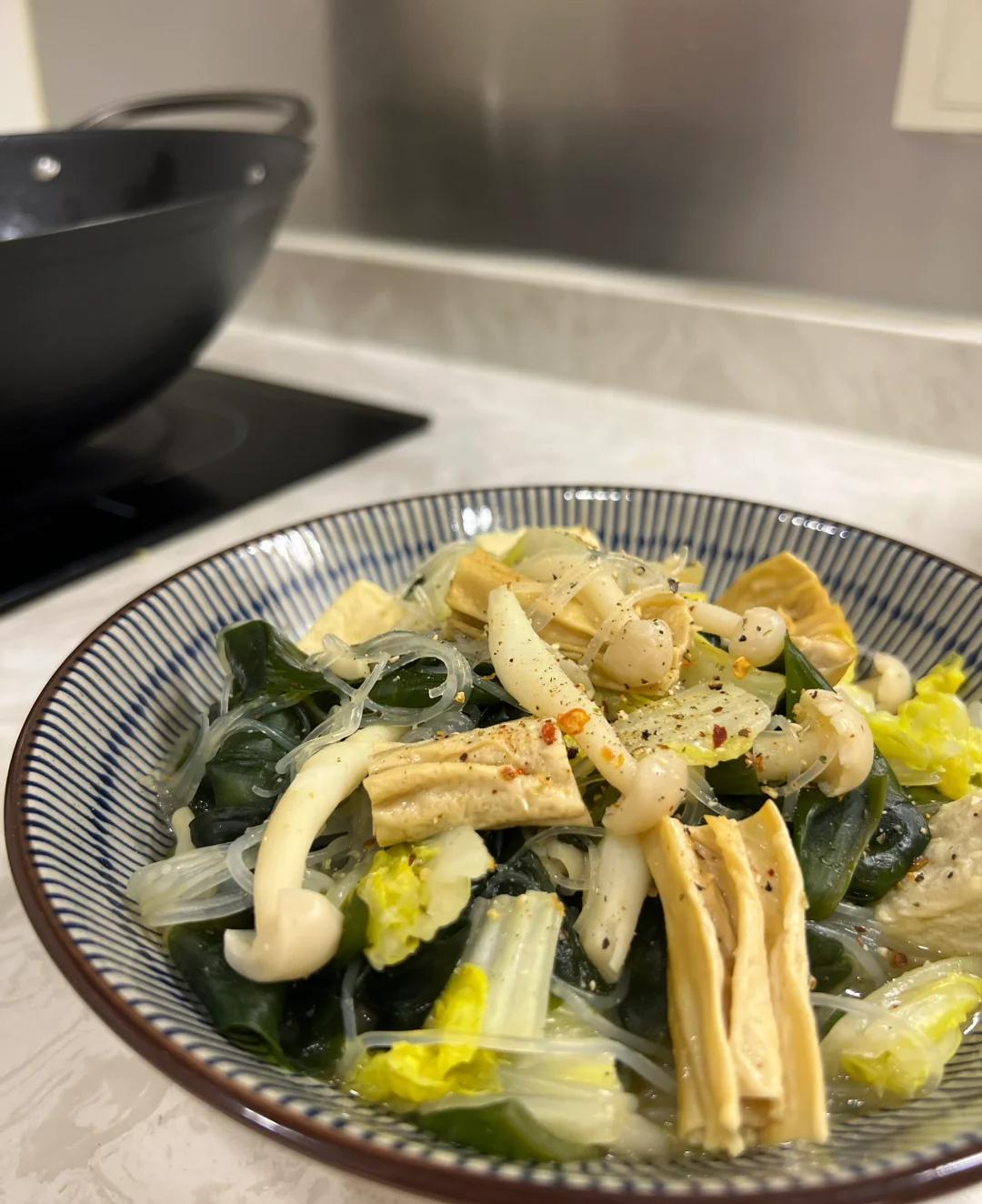 说到营养均衡,我觉得一碗好的蔬菜汤就能满足需求。像文章里提到的那碗汤,里面有腐竹、冻豆腐这些蛋白质,有蟹味菇、裙带菜、娃娃菜这些蔬菜,还有粉丝补充碳水,可以说是营养全面。而且这些食材都比较低脂,对于想要减肥的人来说简直是福音。我记得以前看过一个减肥专家的访谈,他说最理想的减肥餐就是这种营养均衡又低脂的食物。