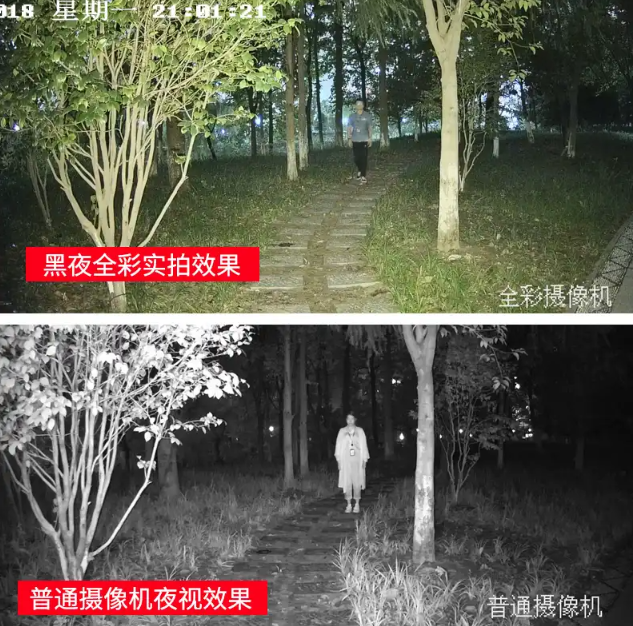 夜晚是安防的黄金时段,夜视能力直接决定了监控的价值。传统的红外夜视虽能成像,但画面是黑白的,细节丢失严重,在复杂光线下效果不佳。