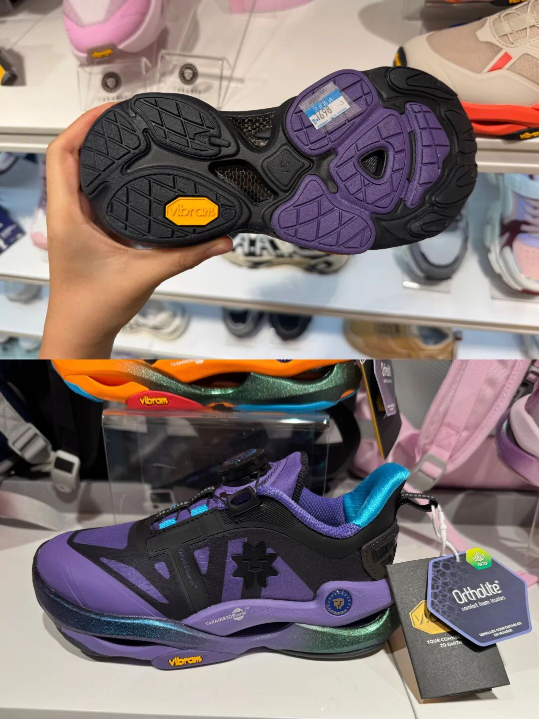 为了撑起高昂的价格,这款“稳跑鞋”几乎融合了目前鞋类能应用到的所有运动科技:Vibram橡胶大底、coolmax面料、T700防护碳板等。
