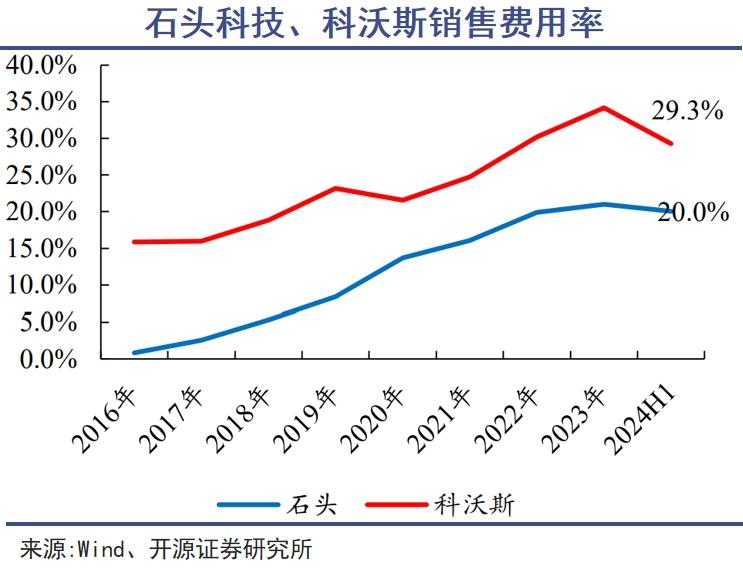 虽然研发投入在增长,但是同销售费用比起来,这点研发投入就不够看了。2021年至2023年,科沃斯的销售费用分别为32.37亿元、46.23亿元、52.97亿元,占总营收的比例分别为24.74%、30.17%、34.17%。