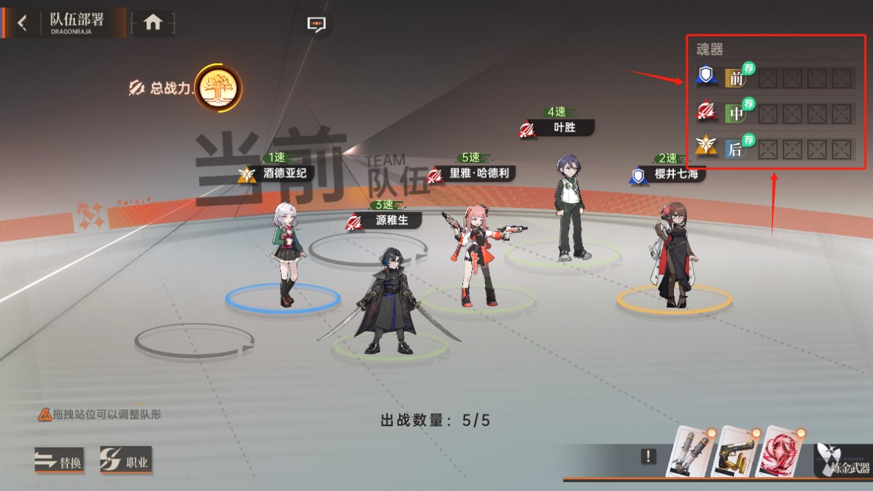 随后再点击左下角[布阵],进入[队伍部署],之后点击右上方[魂器],即可进入魂器功能页面!