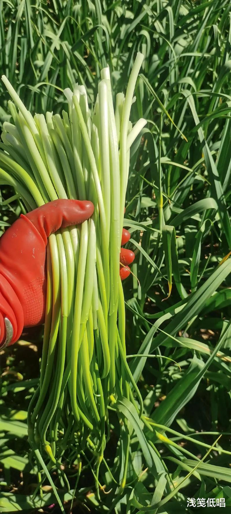 昨天本以为会去地里拔蒜苔,因为如果不拔掉的话就不会长蒜头。询问了下现在收蒜苔的价格,短的两三毛,超过25厘米的9毛,还是便宜的那么稳定。很多人都随意的拔掉扔了,原因是如果卖的话就要绑好码齐,而且要尽量的长才会卖个好价钱。确实挺浪费的,但是也没有办法,很累很慢也卖不出什么价钱。