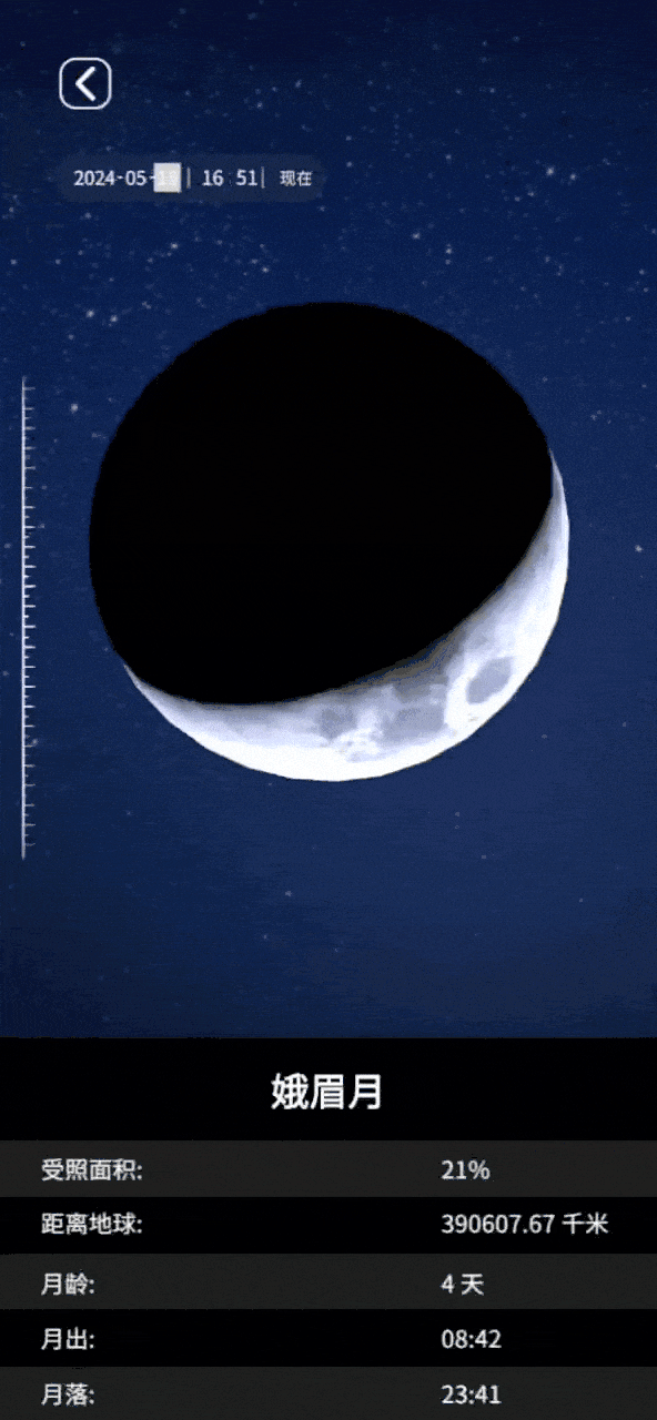 手机上拖动时间,就可以看见月亮每日不同的风貌,从亏缺到盈满,如同生命中的起伏,记录着时间的流转与自然的节奏。