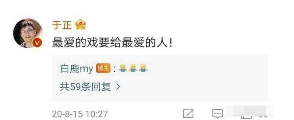 于正还特别为白鹿发文:最爱的戏,献给最爱的人!