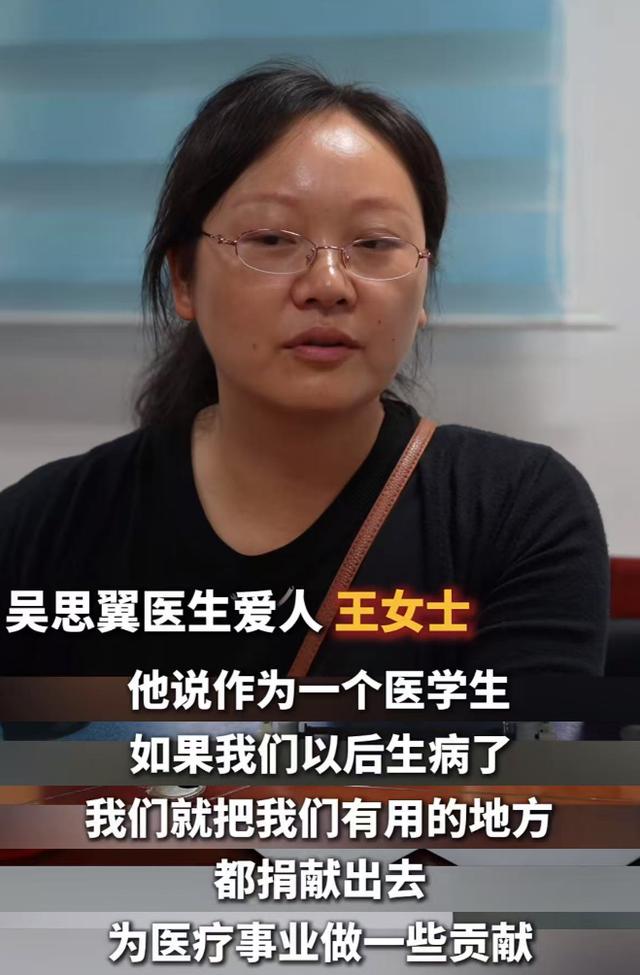或许正是因为王女士同为医护人员,所以能清楚知晓丈夫的生前志向,在采访中,王女士透露,她与丈夫曾谈论过器官捐献的话题,在吴思翼看来,生命终有尽头,捐献器官能让爱意传递,也会让遗属的内心有所寄托,还能给医疗事业做出一定贡献。